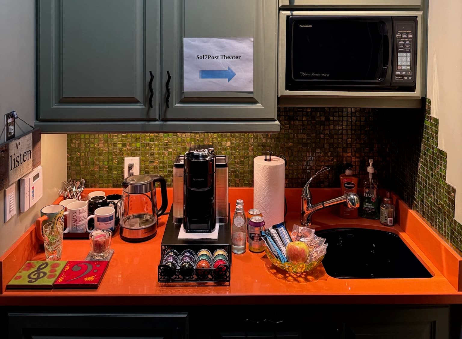 Our studio also features a fully equipped kitchenette, stocked with coffee, tea & water, as well as an assortment of snacks to keep you going!